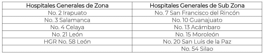 De igual forma, los siguientes hospitales suspenderán las citas y cirugías programadas en especialidades, sin afectar los servicios para pacientes en medicina familiar, diálisis, hemodiálisis, quimioterapia y servicios urgentes de oncología: