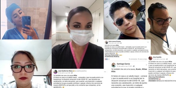 “Si tienes en casa a un adulto mayor, vulnerable y que no pueda asistir a un hospital por la situación actual por lo del COVID-19, que necesite una canalización, un retiro de puntos, una curación, una inyección o cualquier actividad en la que yo puedo contribuir o apoyar, ofrezco mis servicios de manera GRATUITA”, este el texto con el que personas dedicadas al ramo de la salud buscan hacer la diferencia.