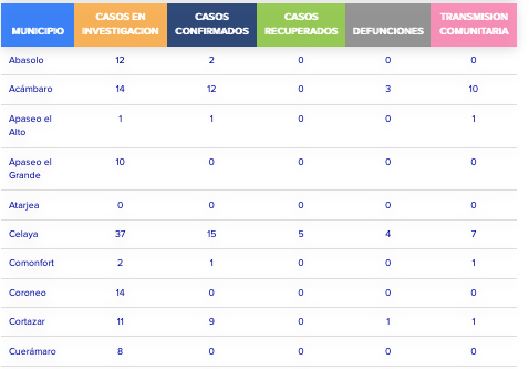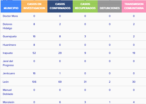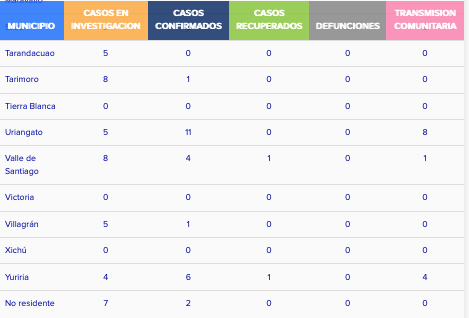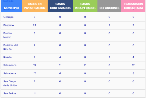 Dos personas más fallecieron este día por contagio del coronavirus Covid-19, mientras que la lista de contagiados está en 271, de los que 141 tienen transmisión comunitaria. Una mujer originaria de Celaya y un octagenario de Salvatierra, las víctimas.
