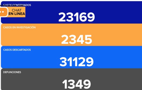 El acumulado total llegó a 23 mil 169 casos positivos y 1 mil 349 defunciones.