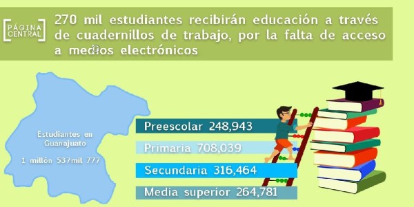 Ante este escenario la SEG contempla la entrega de 270 mil cuadernillos que servirán de apoyo para aquellos estudiantes que carecen de acceso a estos medios de comunicación y que servirán como único apoyo para el proceso de enseñanza en esta nueva modalidad de educación virtual.