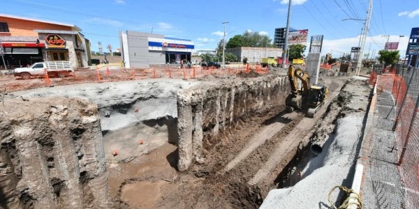 Como parte de la obra se realizan trabajos de excavación y cambio de redes de drenaje pluvial y sanitario, se trabaja en la colocación de columnas y