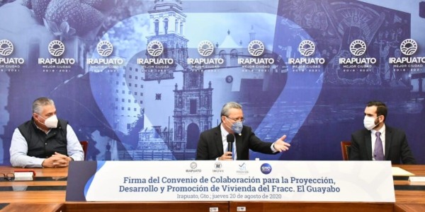 Mediante la firma del Convenio de Colaboración para la Proyección, Desarrollo y Promoción de Vivienda del fraccionamiento El Guayabo, entre autoridades del gobierno municipal y gobierno del estado, se impulsará el progreso para más de 200 familias irapuatenses a través de hogares sustentables.