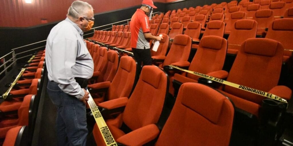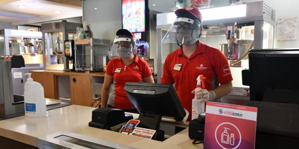 Además, la capacidad en las salas será solo del 25% y su personal utiliza cubreboca, caretas y guantes.