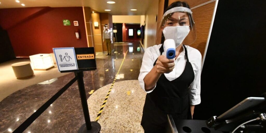 Tanto Cinépolis como Cinemex, implementan medidas como la toma de temperatura, la aplicación de gel antibacterial, desinfección de calzado, separación en los asientos de cada sala para guardar la sana distancia, la desinfección de las salas antes de cada función.