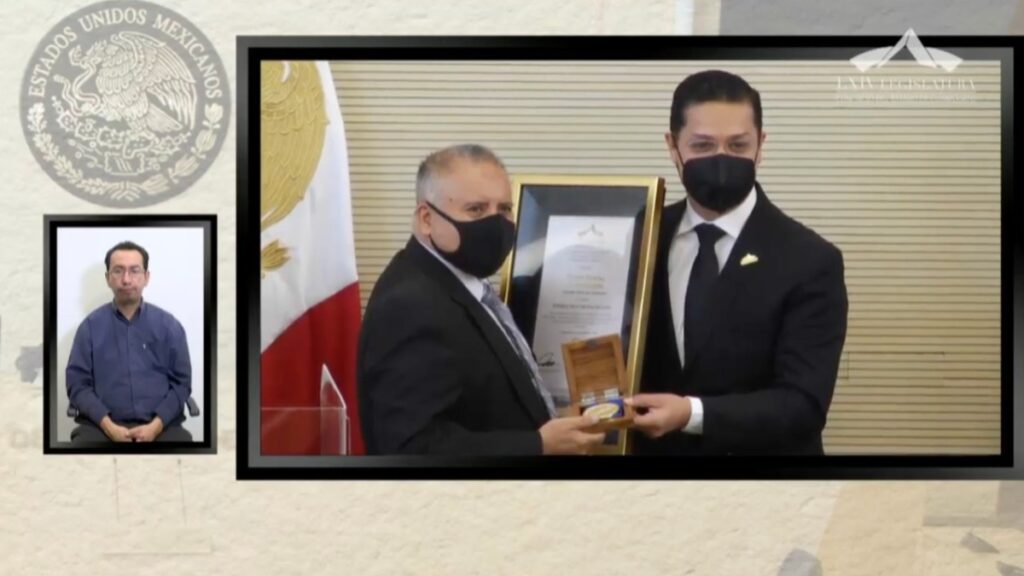 El secretario de Salud, Daniel Díaz Martínez, recibió un reconocimiento especial y en representación de la institución por encabezar la estrategia de atención contra el COVID-19. Así como al delegado del IMSS, Dr. Marco Antonio Hernández Carrillo y del ISSSTE, Dr. Ulises Cázares Calvo.