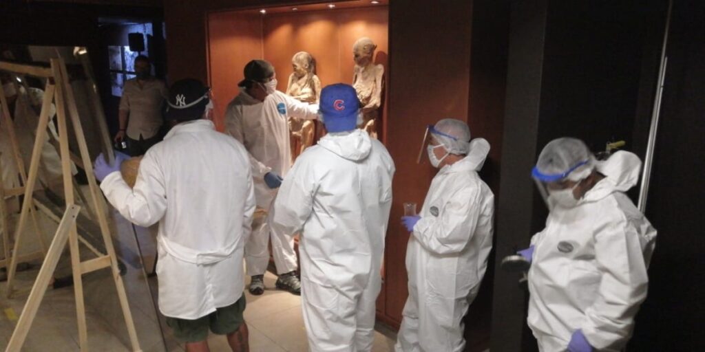Entre febrero y marzo de 2020, este mismo equipo realizó trabajos de fumigación, limpieza en seco e investigación documental en el parador turístico de Sangre de Cristo, con el objetivo de mejorar los procesos de conservación de los 36 cuerpos que allí se exhiben.
