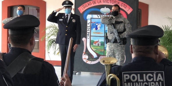 El secretario de Seguridad Ciudadana, Rómulo Catalán, encabezó el acto conmemorativo de la fundación de la Silao en representación del Ayuntamiento.