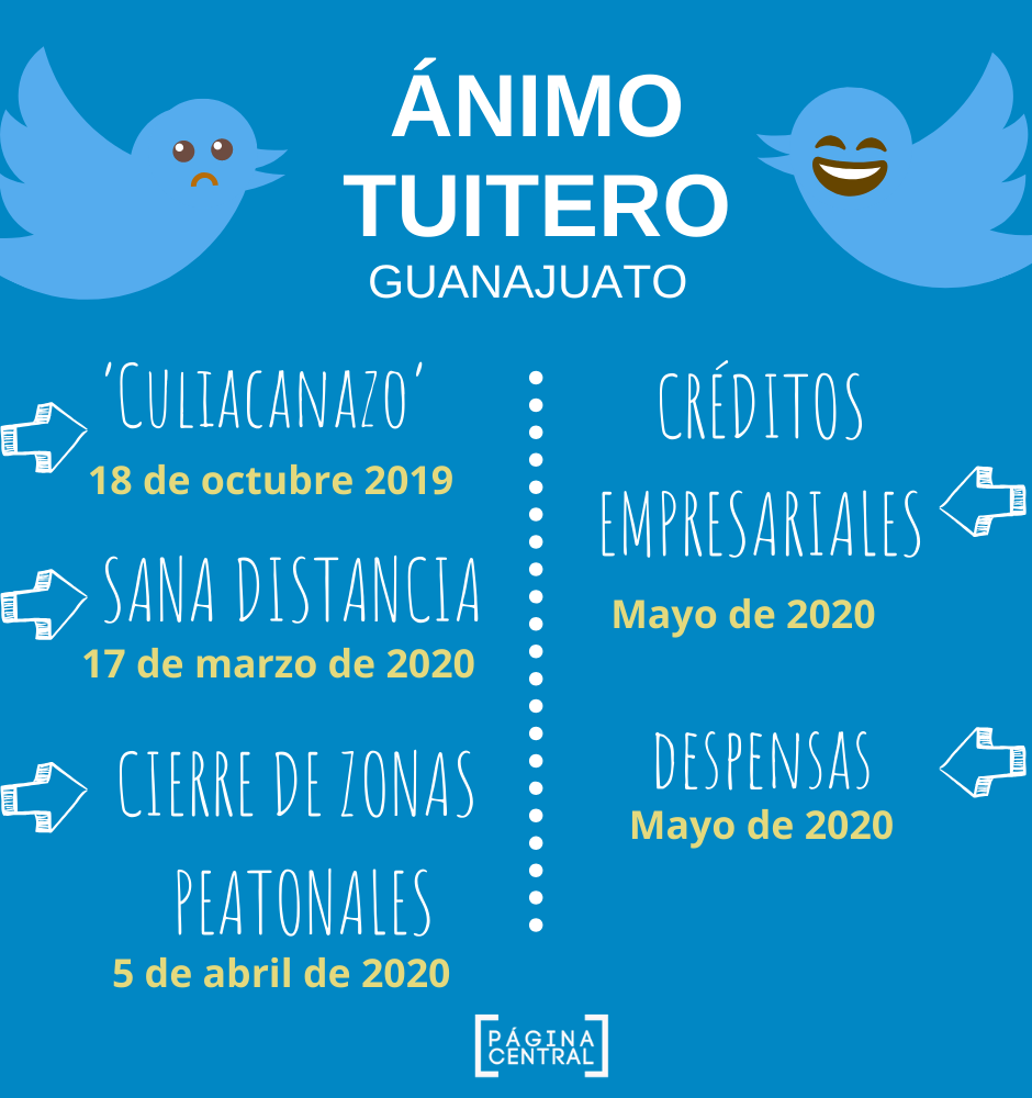 En un análisis día por día, coincide que el día con más comentarios negativos fue el 18 de octubre de 2019 (‘Culiacanazo’), y el segundo día más triste el 17 de marzo de 2020 cuando se anunció la suspensión de actividades escolares en Guanajuato y el inicio de medidas de higiene y sana distancia.