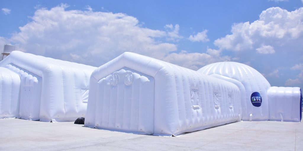 El sistema modular del hospital se instala en 3 días y se infla mediante turbinas de aire continuo, repartidas por todo el perímetro de la estructura.