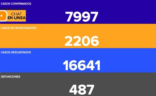 La Secretaría de Salud informó en su portal que la cifra total de contagios ya es de 7 mil 997 confirmados y 487 defunciones.