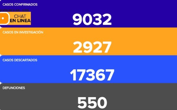 Con esto, las cifras de la pandemia llegan ya 9 mil 032 casos confirmados y 550 fallecimientos en la entidad.