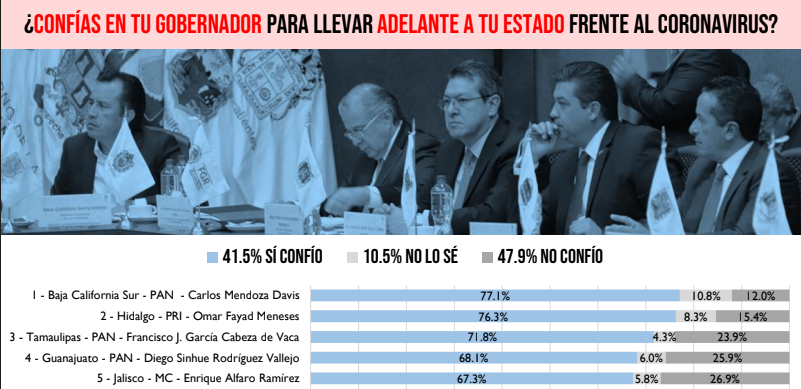 La encuesta que se realizó a 12 mil 492 usuarios de redes sociales del 22 al 25 de marzo, da a conocer el grado de satisfacción y expectativas sobre el actuar de los gobernantes.