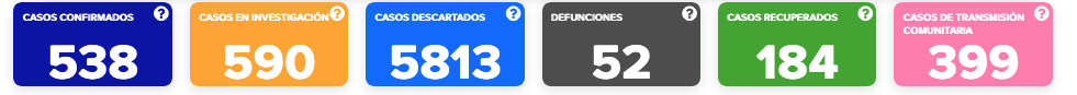 El número de casos comunitarios incrementó hasta 399, un incremento de 44 casos respecto al día anterior.