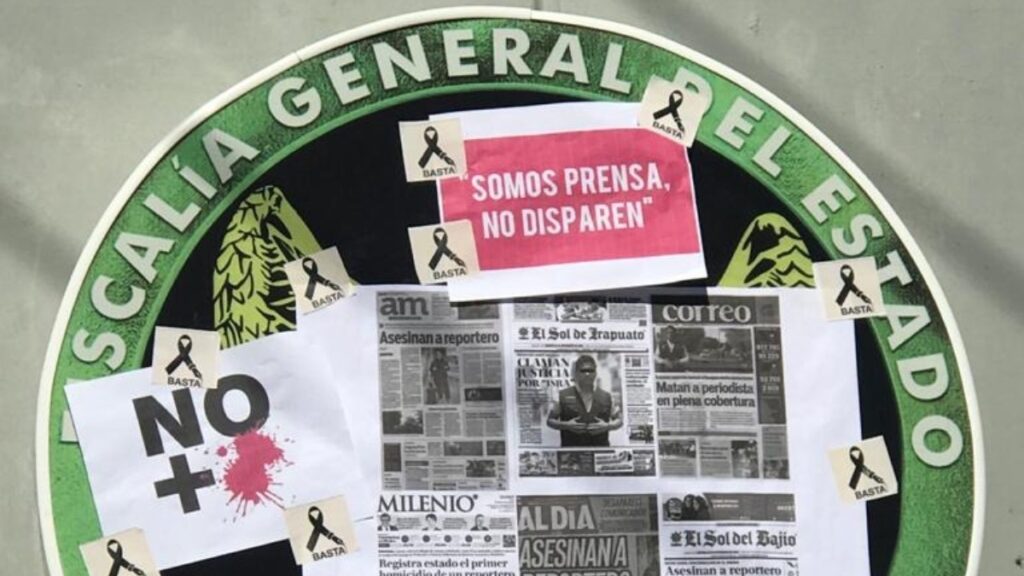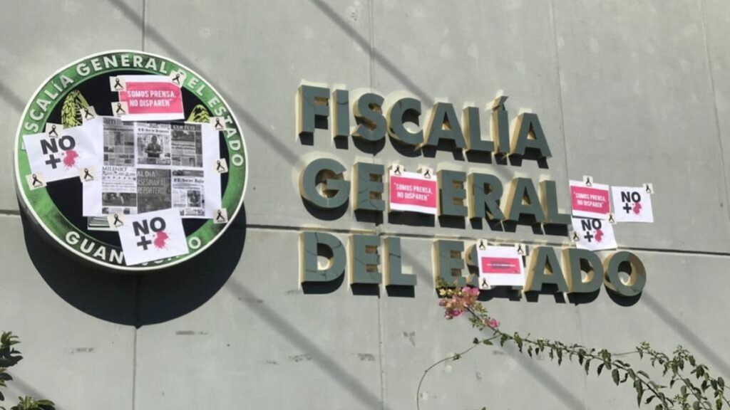 Más de 50 periodistas se manifestaron en las inmediaciones de la Fiscalía General del Estado (FGE) para clamar justicia por los asesinatos de los reporteros Israel Vázquez Rangel de Elihú Ojeda, exvocero de la misma fiscalía, así como por la desaparición del reportero de Celaya Víctor Manuel Jiménez Campos.