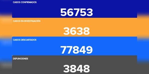 Este jueves se registraron 164 casos positivos a COVID-19 y 34 defunciones, para sumar un total histórico de 56 mil 753 contagios y 3 mil 844 fallecimientos.