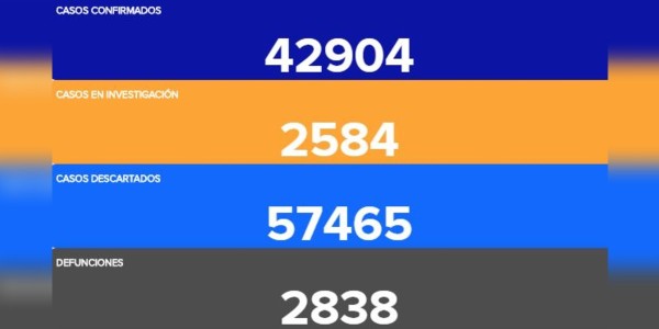 La suma total a partir del comienzo de la pandemia advierte 42 mil 904 personas contagiadas y 2 mil 838 muertes a causa del virus.