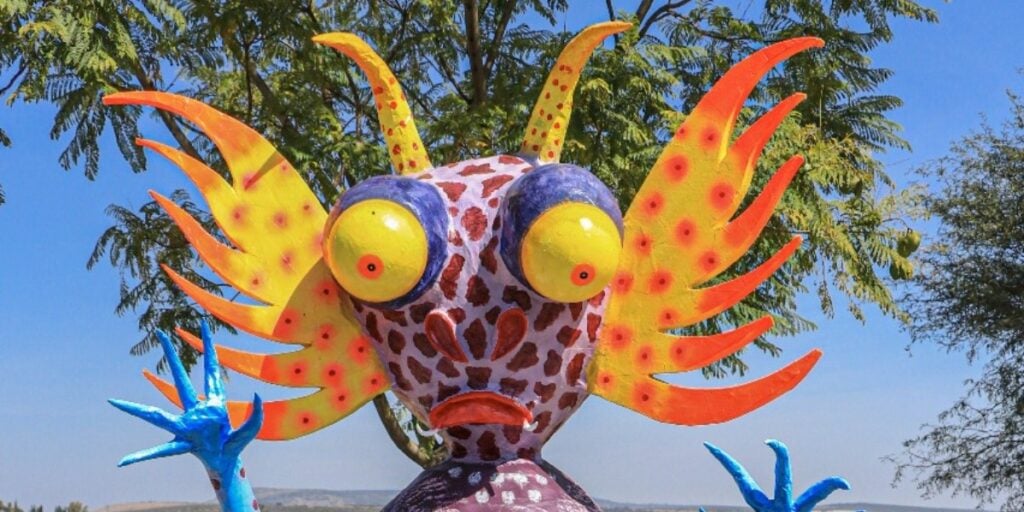 Son 12 piezas coloridas que hacen alusión a los seres de fantasía que, según las tradiciones mexicanas, son criaturas que guían y protegen a los difuntos en su 'camino al cielo'.