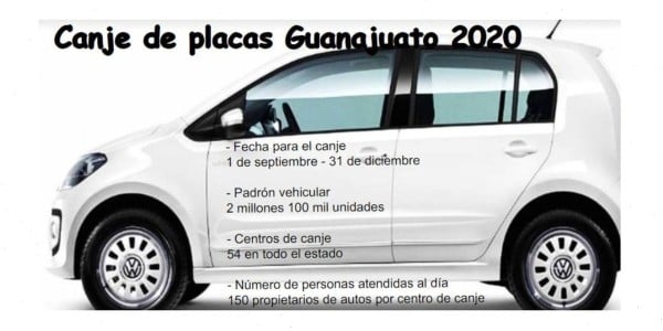 El procedimiento para el canje de placas se programó de acuerdo al último número de terminación de la placa, por lo que aquellas tablillas con terminación 0, 1 y 2, deberán realizar sus trámites durante septiembre; las terminaciones 3, 4 y 5, durante octubre y 6, 7, 8 y 9 deberán acudir a realizar su canje en noviembre. En horarios de lunes a sábado de 8:00 a 20:00 horas.
