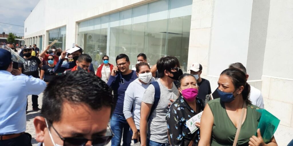En las oficinas ubicadas en Plaza Galerías, además de la aglomeración de personas, se percibió la ausencia de otras medidas sanitarias como la aplicación de gel antibacterial y la toma de temperatura, incluso atendieron a personas que no portaban cubrebocas.