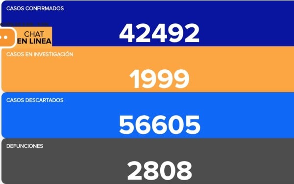 En el acumulado se lleva un registro de 42 mil 492 casos positivos, 2 mil 808 defunciones, 37 mil 315 recuperados y 1 mil 999 en investigación.