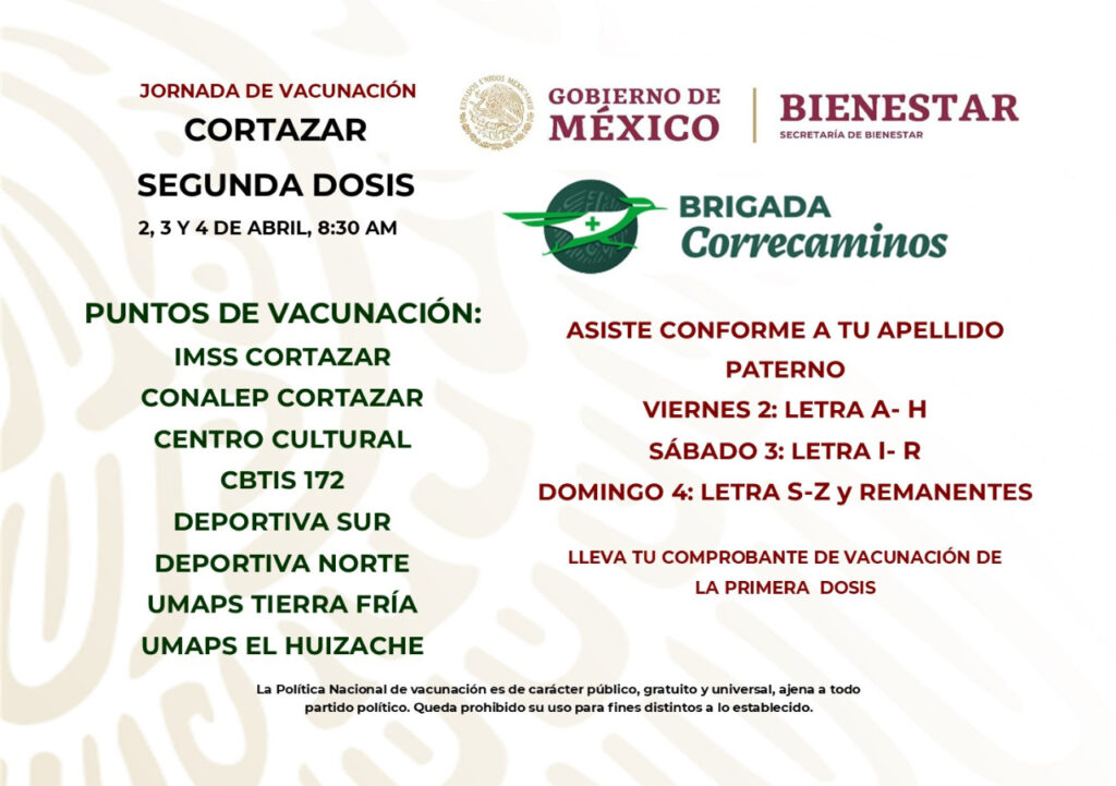 Los derechohabientes deberán acudir al mismo módulo donde fueron vacunados en febrero y llevar su comprobante que se les dio cuando se aplicaron la primera dosis, así como su CURP.