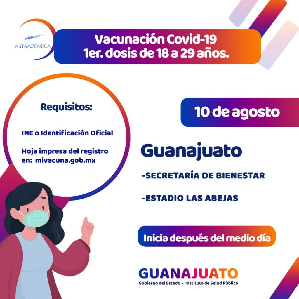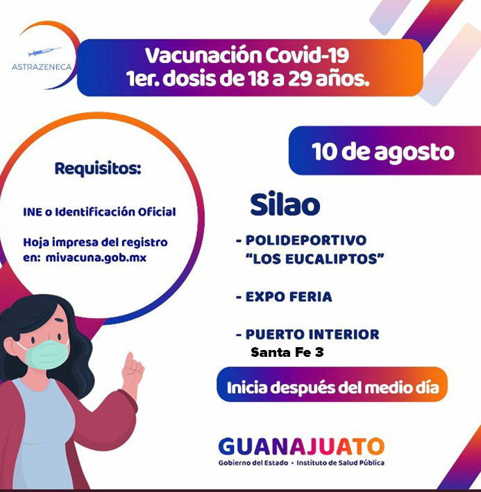 Los jóvenes de 18 a 29 años de Guanajuato capital y Silao serán los primeros en recibir la vacuna contra coronavirus en la entidad; el proceso de vacunación iniciará este 10 de agosto después del mediodía.