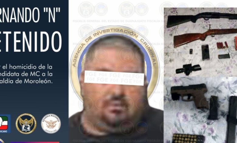 Dos hombres que asesinaron a la candidata a la presidencia municipal por el partido Movimiento Ciudadano, Alma Rosa Barragán, y a cuatro personas en un bar de Moroleón, fueron detenidos con el apoyo de agentes de Investigación Criminal de la Fiscalía General del Estado, de la Secretaría de Seguridad del Estado, del Ejército Mexicano y de la Guardia Nacional.
