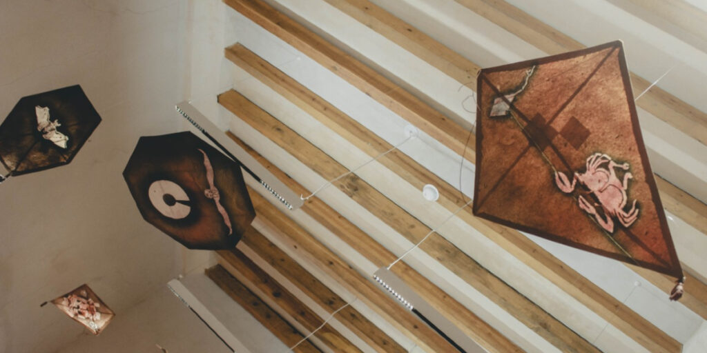 El maestro inició la producción de papalotes en 2004 con una pieza que representaba a dos cangrejos sentados volando uno de ellos. Estas obras son diferentes, pero no por eso menos importantes que su producción gráfica tradicional en metal, madera y piedra.