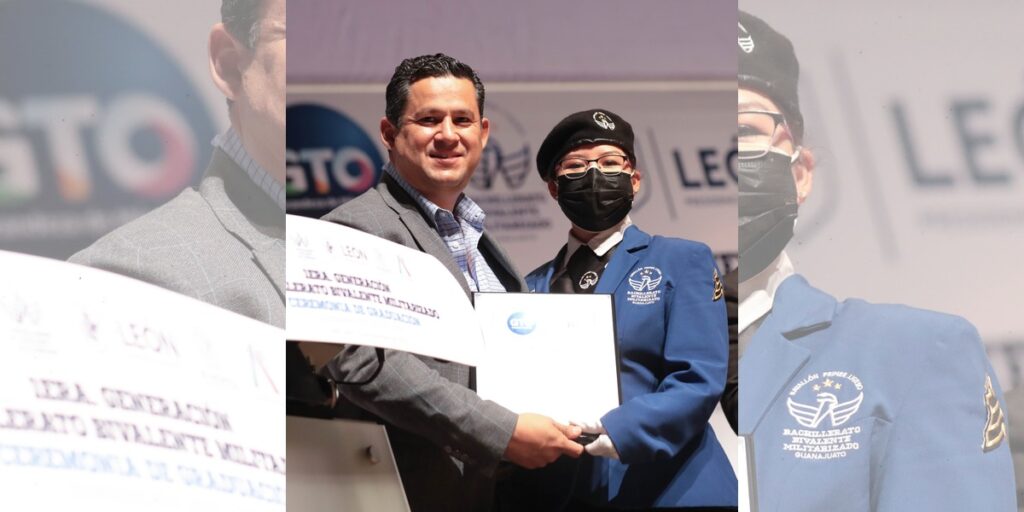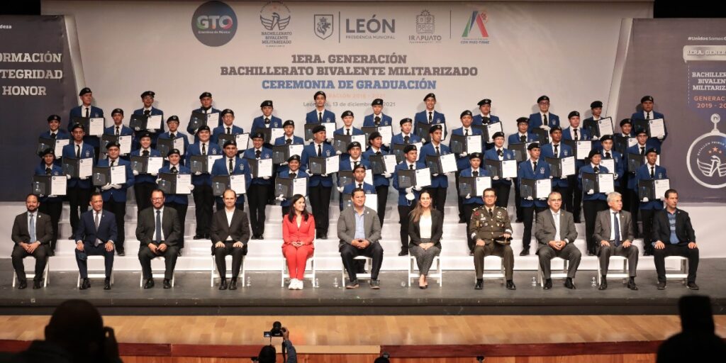 El gobernador del estado, Diego Sinhue Rodríguez Vallejo, invitó a los 143 alumnos egresados que este lunes se graduaron como la primera generación del bachillerato Bivalente Militarizado, del batallón Primer Ligero de Irapuato y León.