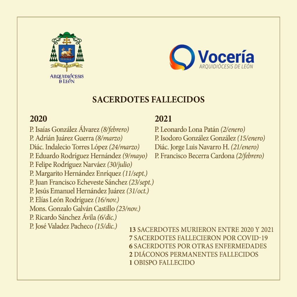 Aún y cuando se compartió la lista de sacerdotes fallecidos, el representante de la iglesia católica, se reservó la identificación de los siete representantes del clero que murieron por COVID-19, por respeto a los deudos.