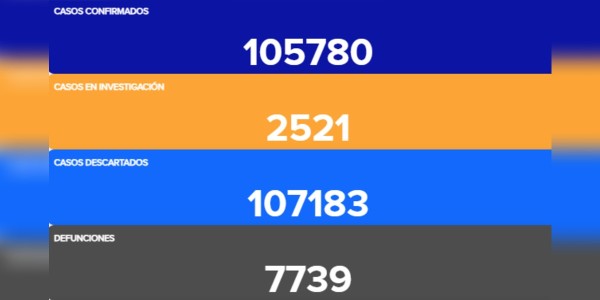 A la fecha permanecen 5 mil 623 personas con el virus activo, 7 mil 739 defunciones y 105 mil 780 personas contagiadas.
