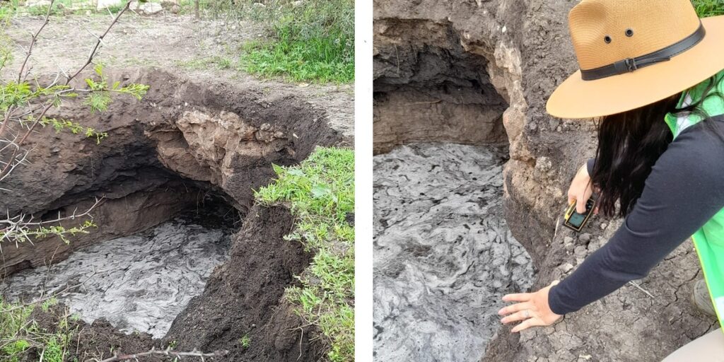 “Al acudir personal para verificar el hecho, se identificó uno de ellos como un socavón con agua, con un diámetro aproximado de 4.1 por 3.5 metros de diámetro y una profundidad de hasta 3 metros.