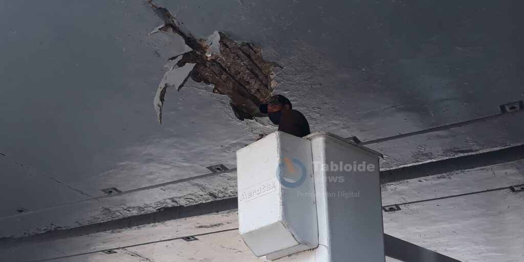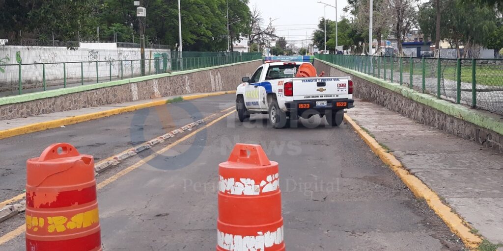 La grieta y el material que se cayó es parte del aplanado estético, no estructural. Es decir, no tiene daño la estructura del puente, pero sí se le tendrán que hacer reparaciones internas, y para evitar que el material de trabajo caiga y dañe algún vehículo, el paso a desnivel permanecerá cerrado mientras se realizan los trabajos.