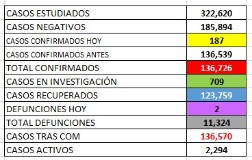 La cifra total de casos y muertes por coronavirus indica que hasta hoy se han identificado 136 mil 726 contagios y 11 mil 324 guanajuatenses fallecidos.