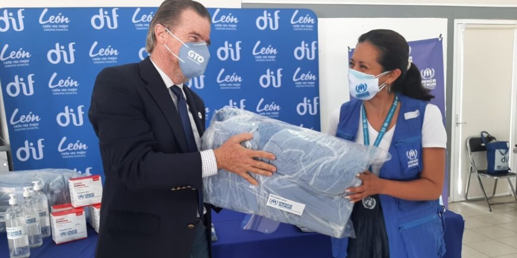El funcionario estatal dijo que derivado de las circunstancias actuales, se debe trabajar de manera transversal desde el gobierno y en conjunto con organizaciones internacionales como la ACNUR, con la cual hace poco más de un año, se firmó un acuerdo de colaboración.La donación consistió 2 mil Batas Quirúrgicas, 60 mil mascarillas médicas, 2 mil respiradores de partículas N95, 2 mil caretas y 200 Litros de alcohol en gel para manos.Al respecto, Enrique Negrete, director general de administración de la Secretaría de Salud, agradeció el apoyo y la solidaridad para con las y los profesionales de la salud que hoy en día, siguen en el frente de batalla.“Esta generosidad la haremos extensiva a las personas que ahora están en la línea de batalla. Aun así, les pido respetuosamente, sigamos con todas nuestras medidas de higiene, usemos cubrebocas siempre, mantengamos la sana distancia y no olviden lavarse las manos frecuentemente”, indicó.Desde el 2020 la ACNUR cuenta con una oficina en la ciudad del calzado ubicada dentro las instalaciones del DIF León, y gracias a esto, cuenta con una red de enlaces institucionales a nivel estatal, coordinado por la Secretaría del Migrante y Enlace Internacional, y a nivel local por el DIF León.MEJZ*
