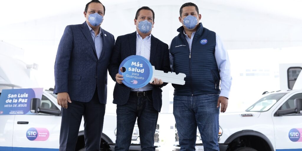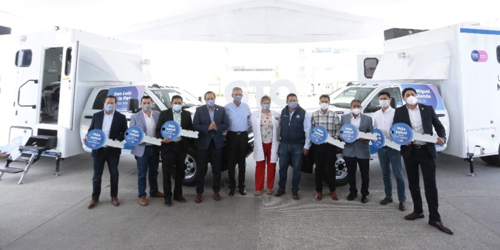 Para garantizar la cobertura médica en Guanajuato, Diego Sinhue Rodríguez Vallejo entregó Unidades Médicas Móviles equipadas para consulta externa y odontológica en ocho municipios.