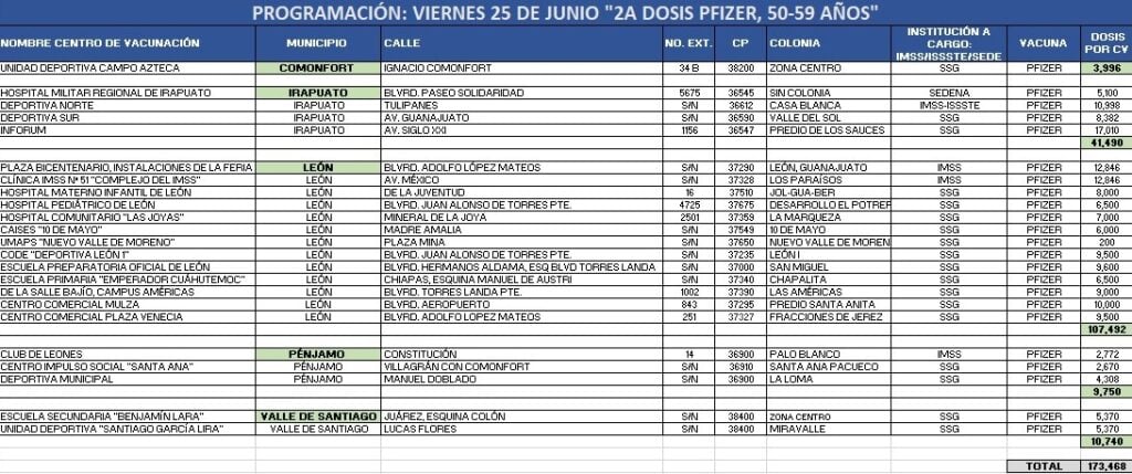 Para conocer más información sobre los detalles de la vacunación, el gobierno estatal puso a disposición la página https://coronavirus.guanajuato.gob.mx y la línea telefónica 8006272583.