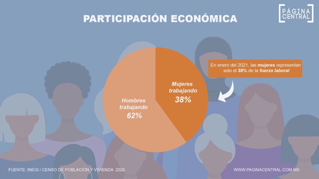 Las mujeres representan el 38% de la fuerza laboral en el país, es decir, que 20 millones 708 mil 382 mujeres mayores de 12 años realizan alguna actividad económica con un ingreso.