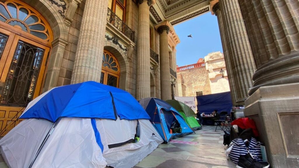 El plantón en el Teatro Juárez de la capital del estado se mantiene.