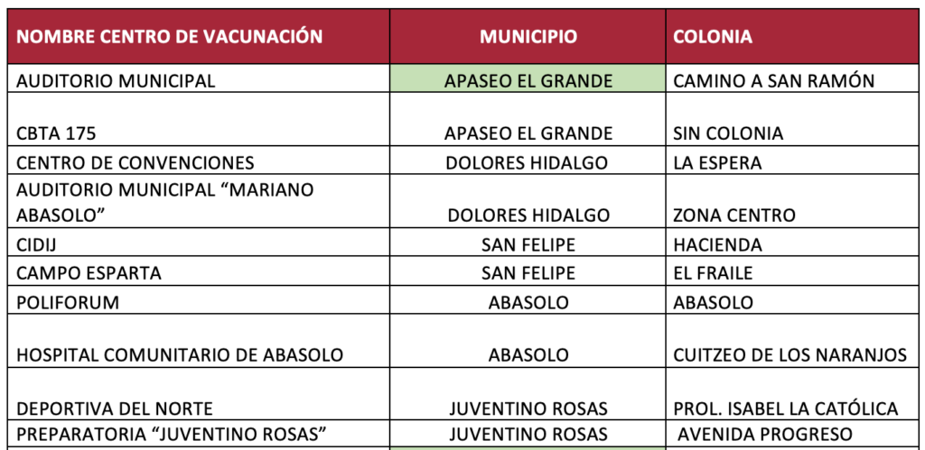 Los adultos mayores de cinco municipios más de Guanajuato recibirán su segunda dosis de la vacuna contra el COVID-19 a partir de este martes.