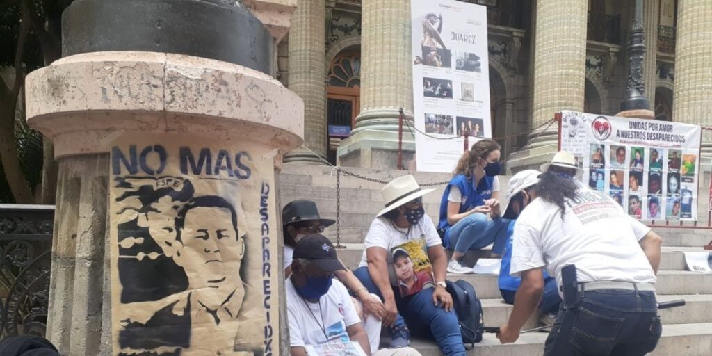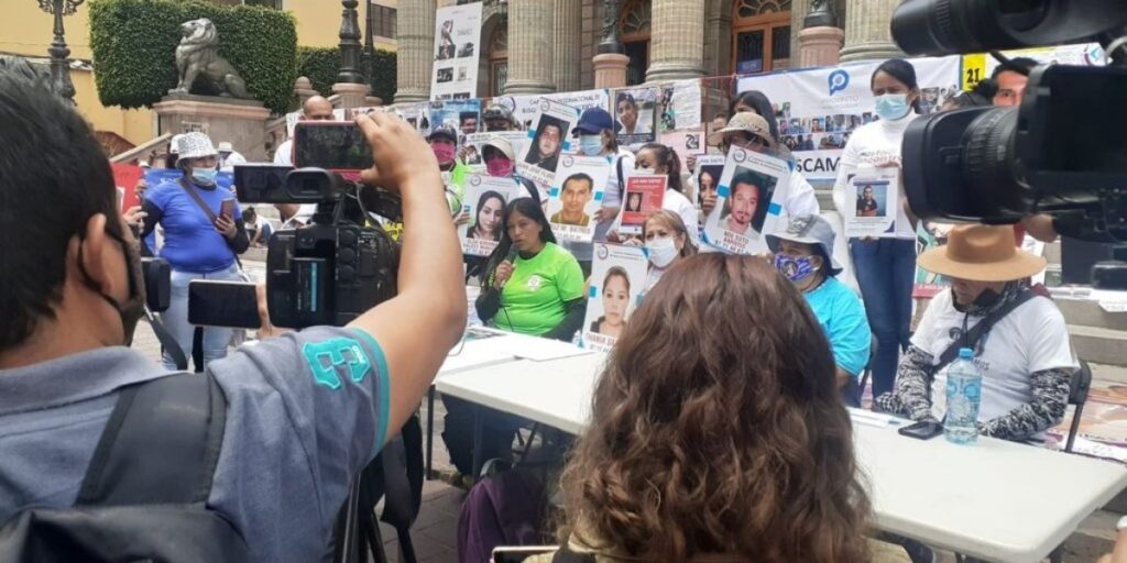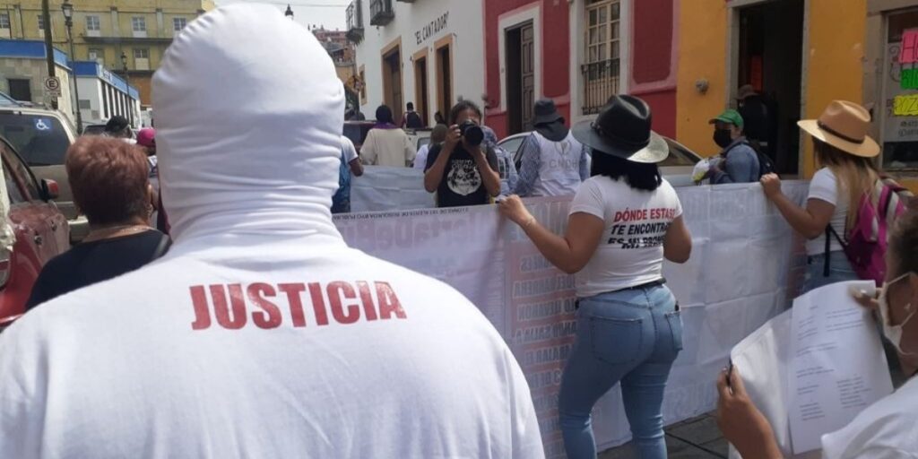 El grito de justicia apagó al coro que resuena cada año. Por la calle Juárez avanza un grupo de madres que no festejaron el 10 de mayo. Sostienen pancartas, caminan hombro a hombro y exigen saber el paradero de los suyos.