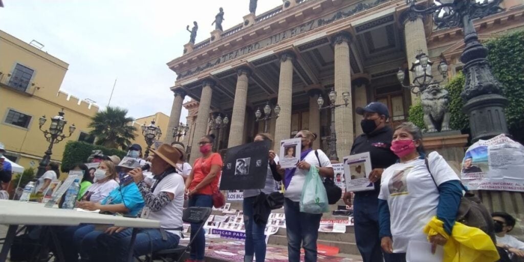 “Hija escucha tu madre está en la lucha”En el contingente, que ha salido de la zona conocida como Los Pastitos, caminan otras historias. Buscadoras guanajuatenses que también han sido revictimizadas por la Fiscalía General del Estado en donde también han criminalizado a sus familiares: ‘¿pues en qué anda metido?’ ‘seguro ella estaba en malos pasos’. Entre ellas avanza Sandra Mercado, lleva 4 años buscando a Ramona, su hija.“Debido a que yo empezaba a caminar sola, yo no quiero que las familias sufran lo que yo sufrí. Anduve en diferentes estados haciéndolo yo sola. En ese andar me encontré a Georgina y por eso decidí hacer lo necesario para que la caravana pasara por aquí, por amor a mi hija Ramona Ramos Mercado, quien desapareció en septiembre del 2017”.Esta es la primera de once actividades que integran la agenda de la caravana internacional.Visitarán las instalaciones de la fiscalía, marcharán en León, entrarán a los Centros de Readaptación Social de Irapuato y Valle de Santiago y cerrarán agenda en San Luis de La Paz, municipio del noreste de Guanajuato, en donde 22 familias cumplieron 10 años de buscar a sus migrantes desaparecidos.A las madres ludovicenses las representa Evelina Guzmán, una de las fundadoras del colectivo ‘Justicia y Esperanza’. El reclamo, desde esa región de la entidad, apunta a la omisión oficial, la existencia de cifras inexactas, la irresponsabilidad de las instituciones, la falta de eficacia en la búsqueda de guanajuatenses desaparecidos que hoy se cuentan por miles.“El 21 de marzo de 2011, 24 migrantes de San Luis de la Paz salen con la expectativa de llegar a Estados Unidos. ¿Cómo es posible que al día de hoy el gobernador o las instituciones que les compete tener un registro de víctimas, digan que en 2012 no hay registro de personas desaparecidas en San Luis de la Paz? En 2013 se tiene registro de siete personas desaparecidas; para nosotras es una burla”.“Seguiremos en la lucha cueste lo que cueste”Las imágenes que dejan a su paso resultan contrastantes. Hijos que buscan el regalo perfecto y madres que marchan en búsqueda de sus hijos. Son 22 colectivos de 25 ciudades, que pertenecen a 11 estados de la república. Algunos ciudadanos y turistas las filman, otros observan mientras intentan comprender la exigencia que se apropia de las callejuelas de Guanajuato capital.En esta parte del país, las autoridades tienen registradas a más de 2 mil personas que están en calidad de desaparecidas. La lista está conformada por hombres, mujeres, padres, madres, adultos y también niños. Hace apenas un año desde que Guanajuato cuenta con una ley estatal de búsqueda de personas.El Teatro Juárez ha sido tres veces testigo del grito de justicia que hoy apaga los cantos de celebración. Ahí se han plantado para demostrar su rechazo a la conformación de la Comisión Estatal de Búsqueda, han exigido búsquedas profesionales en fosas clandestinas. El 10 de mayo recibe a las madres que hacen valer el coro de la canción de cada año: guerreras invencibles y luchadoras incansables.MEJZ*