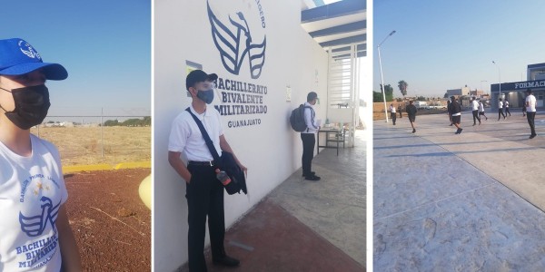 También en Irapuato un total de 30 alumnos del Bachillerato Bivalente Militarizado, así como 15 docentes y 11 empleados administrativos, volvieron a las clases presenciales del plan piloto de regreso a la escuela que instrumentó la Secretaría de Educación de Guanajuato.