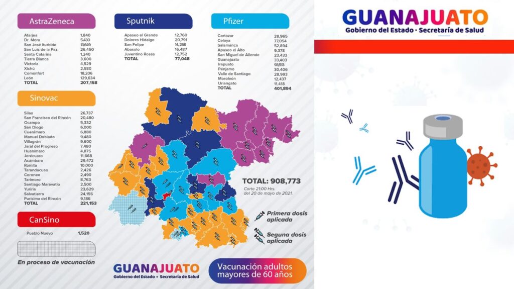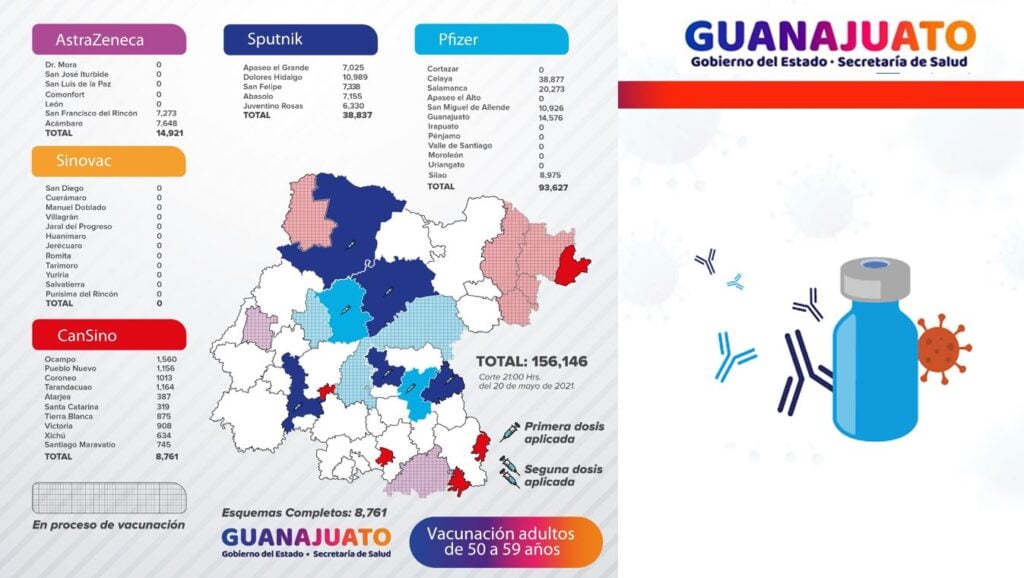 La entidad acumuló al corte de este 20 de mayo, la aplicación de 908 mil 773 dosis de vacunas, de las cuales, 156 mil 146 dosis corresponde a personas a la aplicación a personas de entre 50 y 59 años.