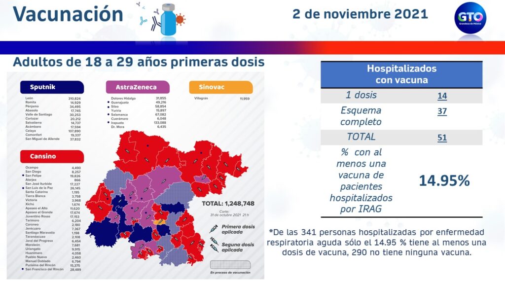 De las 188 hospitalizaciones, hay ocho personas positivas al virus del SARS-CoV-2 que reciben actualmente atención en hospitales privados, uno en el Hospital Ángeles y los ocho restantes en el nosocomio MAC de Irapuato.