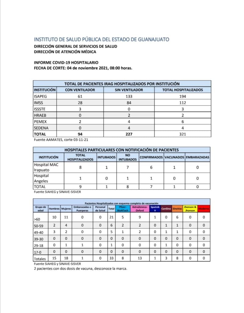 La Secretaría de Salud de Guanajuato (SSG) reportó la atención hospitalaria por coronavirus de 168 guanajuatenses, doce menos que el informe del día anterior, sin embargo, a diferencia de este miércoles cuando solo se registraron dos decesos por la misma causa, este jueves el listado sumó 21 fallecimientos.
