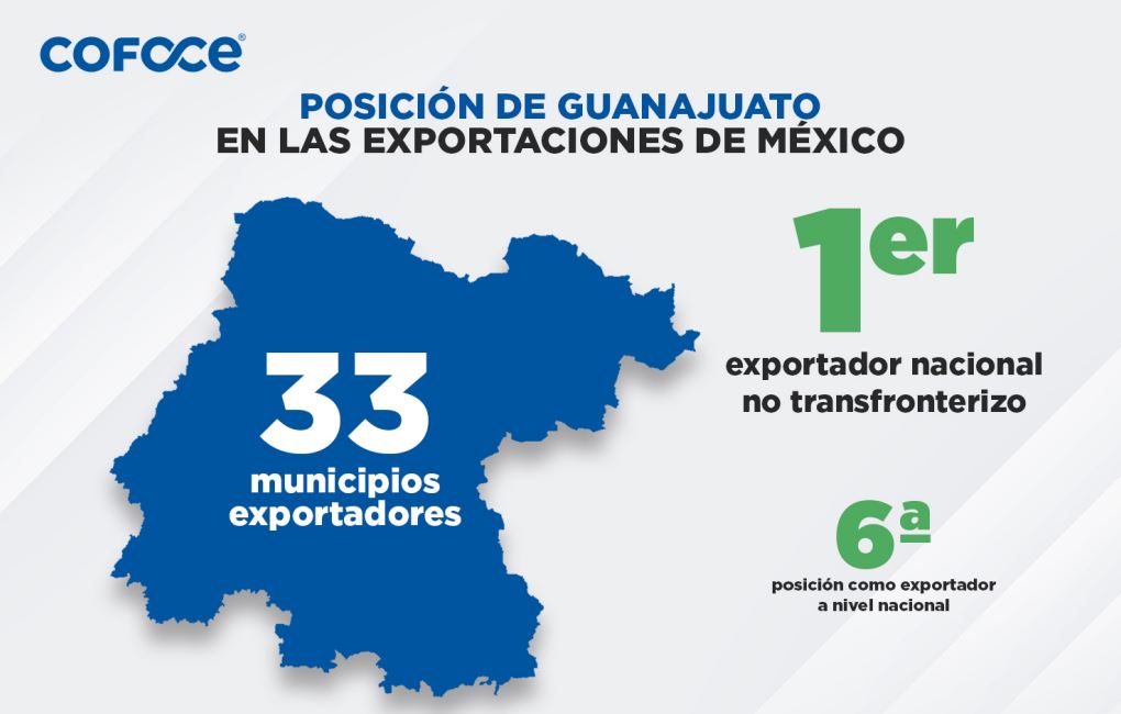 Las exportaciones de Guanajuato actualmente se concentran en 33 municipios, Guanajuato es el primer exportador nacional no fronterizo.