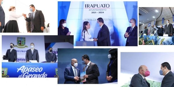 En 22 de los 46 municipios son gobernados por alcaldes emanados del Partido Acción Nacional (PAN), entre los que destacan las ciudades del corredor industrial como San Francisco del Rincón, León, Guanajuato, Irapuato y Celaya.En 10 municipios más de la entidad gobernarán ediles que fueron abanderados del Partido Revolucionario Institucional (PRI) como lo San Miguel de Allende, ciudad que recuperó Mauricio Trejo Pureco y que ya había gobernado. A los que se suman Tarimoro.En el caso de Morena continuará gobernando el municipio de Salamanca, pero ahora al frente Julio César Prieto Gallardo; y por primera vez Silao será gobernador por este partido, en la figura del expanista Carlos García Villaseñor. Un tercer municipio que será gobernado por Morena es Doctor Mora, con Javier Reséndiz Jacobo.El Partido Verde Ecologista de México, PVEM, asumió en Yuriria con Ma Ángeles López Bedolla; Huanímaro con Laura Villalpando Arroyo y en San Felipe, repite un trienio Eduardo Maldonado García.En Moroleón llegó Alma Denisse Sánchez Barragán impulsada por Movimiento Ciudadano, posterior al asesinato de su madre durante un mitin. Juan Lara Mendoza de Nueva Alianza gobierna Villagrán.Trabajar unidos por el desarrollo integral de Guanajuato, el exhorto del gobernador
