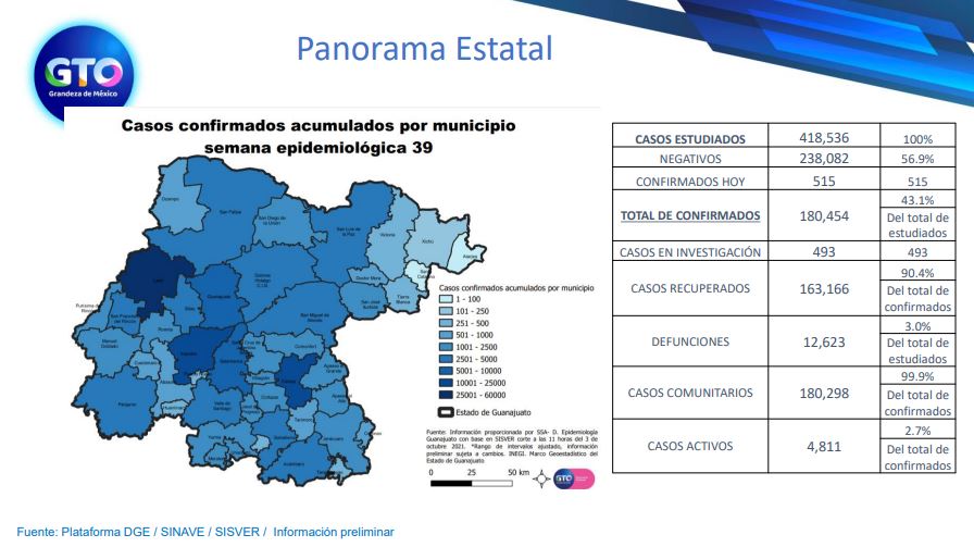 Hay además 508 casos en investigación y otros 4 mil 423 casos activos.